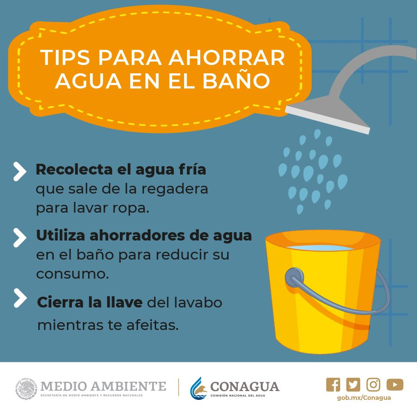 Así que no esperes más, si bien el cuidado del agua depende de cada persona, cualquier esfuerzo o medida en harás de su preservación cuenta, el planeta, tu salud y tu bolsillo te lo agradecerán. Con esta idea, la Comisión Nacional del Agua (Conagua) hace las siguientes recomendaciones: